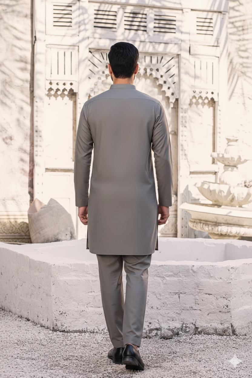 Premium boski fabric in a Greyish Taupe — smooth, cool, and a perfect pick for festive wear.
