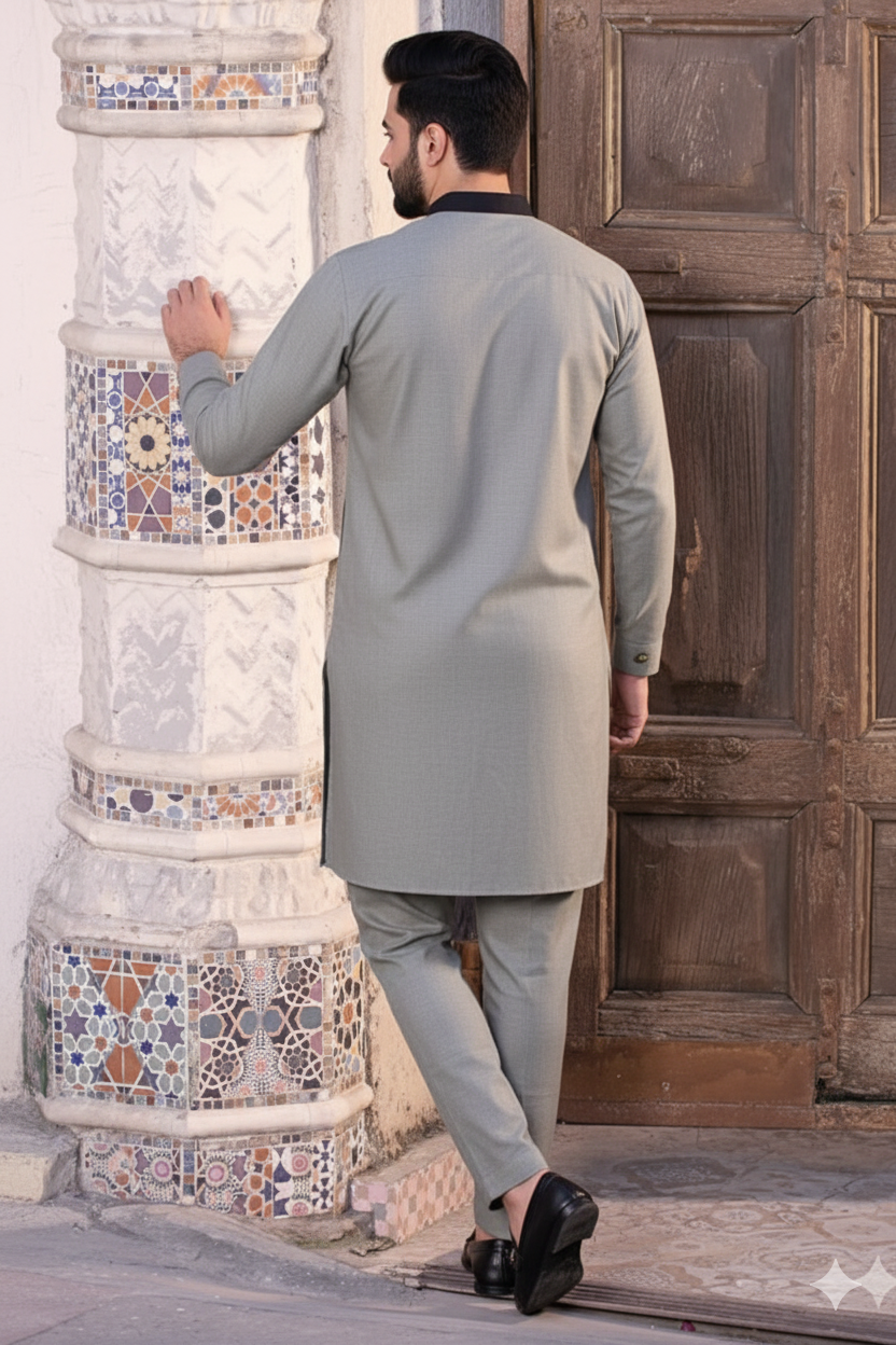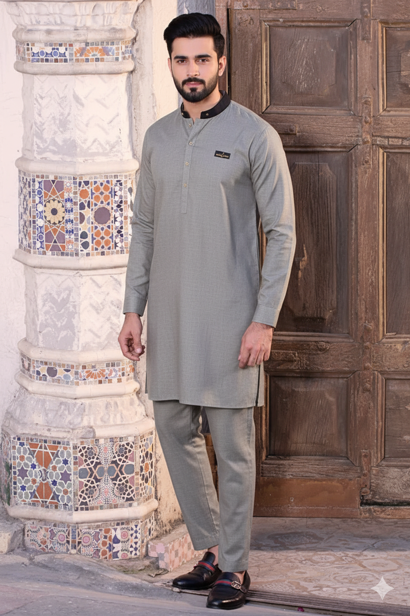 Crafted from premium Pure Cotton fabric in a Light Grey tone — breathable, wrinkle-resistant, and ideal for daily comfort.